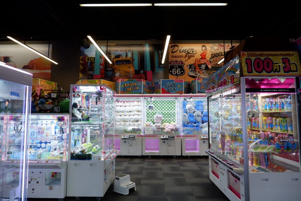 広い駐車場の一角に車を止めて、ボーリング場1階のゲームセンターへ。館内はどことなくアメリカンな雰囲気が漂い、気分はプチラスベガスです。