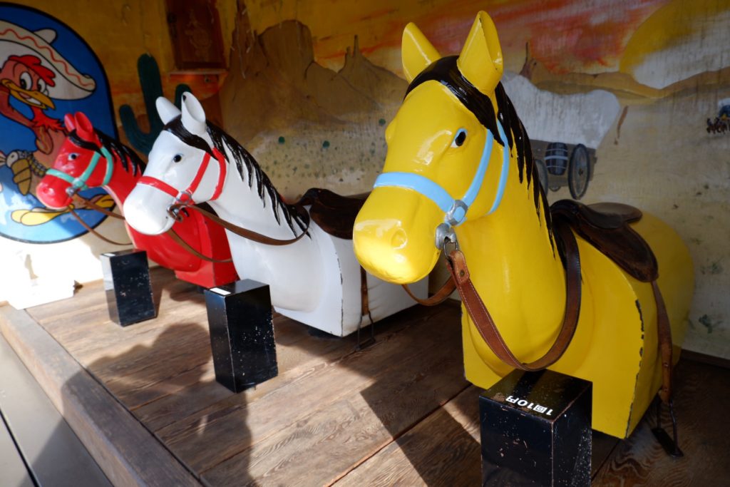 現代の華やかでメルヘンチックなメリーゴーランドに比べれば簡素な造りですが、昭和中期の素朴な空気をそのままに、今も子どもたちに親しまれています。