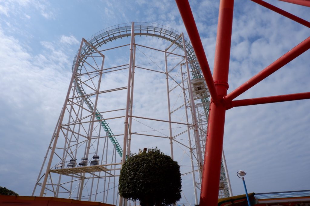全長は約1.5kmもあり、広大な敷地を贅沢に使ったコースレイアウトになっています。例えるなら、としまえんのサイクロン、富士急ハイランドのド・ドドンパ、USJのハリウッド・ドリーム・ザ・ライドのような存在感でしょうか。
