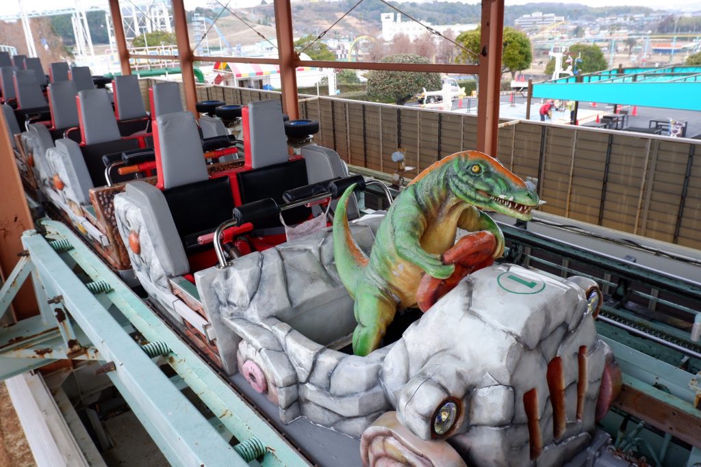 1987年(昭和62年)にオープンした「恐竜コースター」(現:恐竜コースター GAO)。長い間来園者に親しまれている、グリーンランドを代表するアトラクションの1つです。