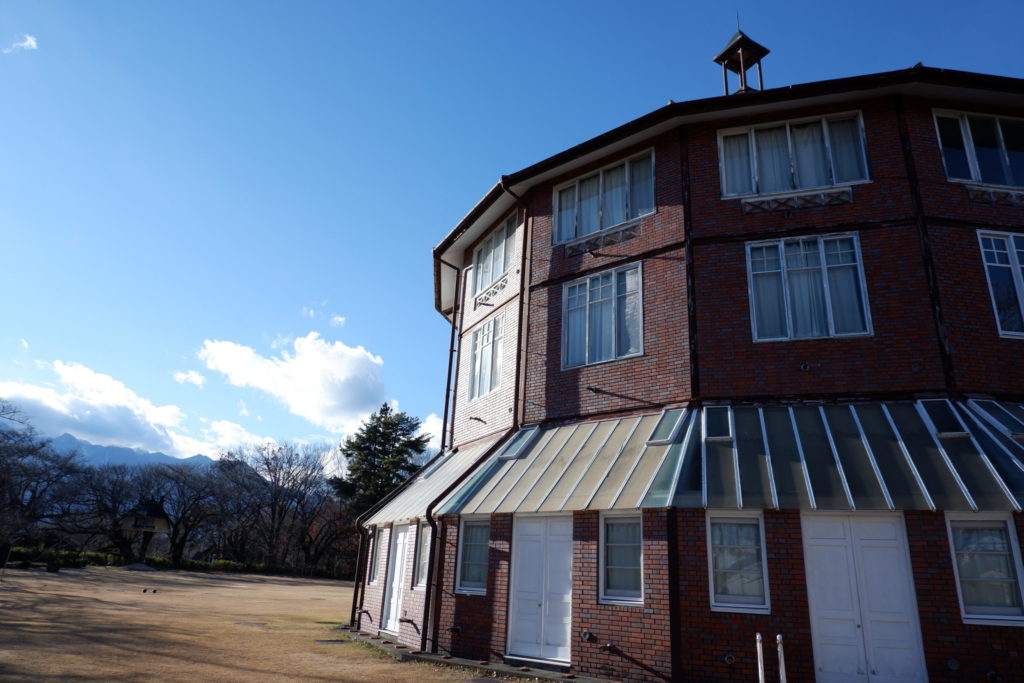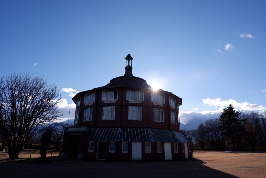 八ヶ岳南麓の豊かな自然の中に、ぽつんと佇む西洋建築。その異質さは、見る者に鮮烈な印象を与えます。まるで、ジブリ映画「君たちはどう生きるか」に出てくる「大叔父様の塔」のような。