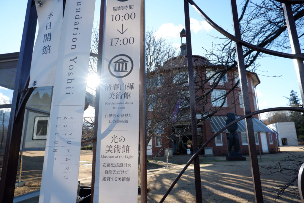 かつての清春小学校跡地を活用した広大な敷地には、安藤忠雄氏のコンクリート建築「光の美術館」や、白樺派を紹介する「清春白樺美術館」などが点在しています。