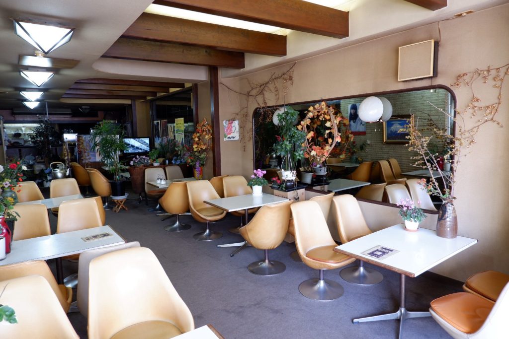 スズラン以外は、古い建物ばかりが並びます。中でも気になったのが「喫茶コンパル」。店内に入ると、まるで時が止まったかのような、濃厚な昭和レトロ空間が広がっていました。