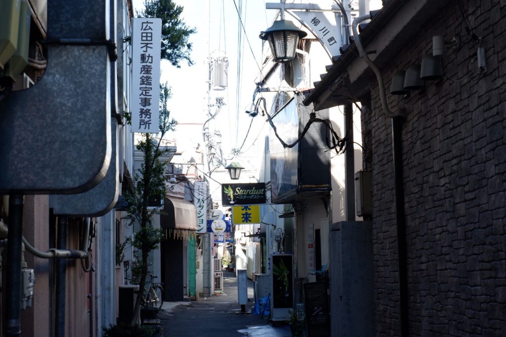 「中央銀座」の北西に広がる「柳川町」は、歓楽街としての性格が強いエリアです。キャバクラやスナックなどの夜のお店が立ち並び、なかなかディープな雰囲気が漂っています。