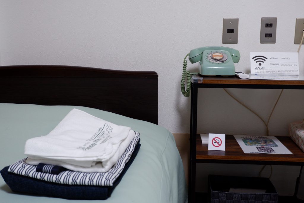 今回宿泊したのは、ツインベッドにユニットバスのシンプルな洋室です。備え付けられた電話機が異常に古そうな気がしますが、それ以外にはとくに変わったところはありません。