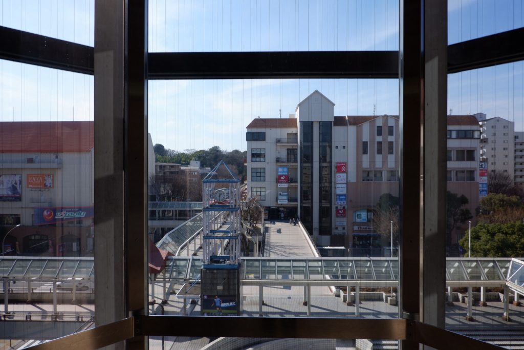 階段を上がると、まるで “郊外型ニュータウンの駅前風景” のような歩行者空間が広がっていました。拠点性を感じる景色ですが、一方で ここを通る公共交通機関は路線バスのみ。過去に鉄道の延伸計画があったものの、実現しないまま現在に至ります。
