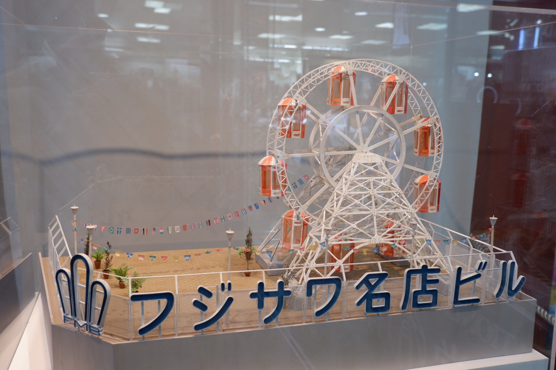 ビル開業50周年を迎え、記念事業の一環として「観覧車の模型」が製作されたのです。手掛けたのは、世界的ジオラマ作家である荒木智氏。“幻の屋上観覧車” が、(小さくなって)再びフジサワ名店ビルのランドマークになりました。