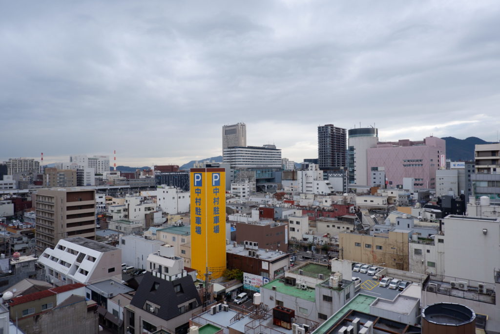 福岡県北九州市小倉区にある、老舗百貨店の屋上広場。開放感溢れる空間から、迫力ある都市景観を一望することができました。