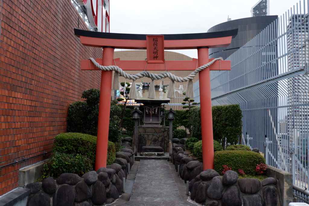 屋上の北端には、デパートの屋上には欠かせない “祠” があります。ちょうどそこから眺められるのが、今日の北九州市の発展になくてはならない「北九州工業地帯」です。