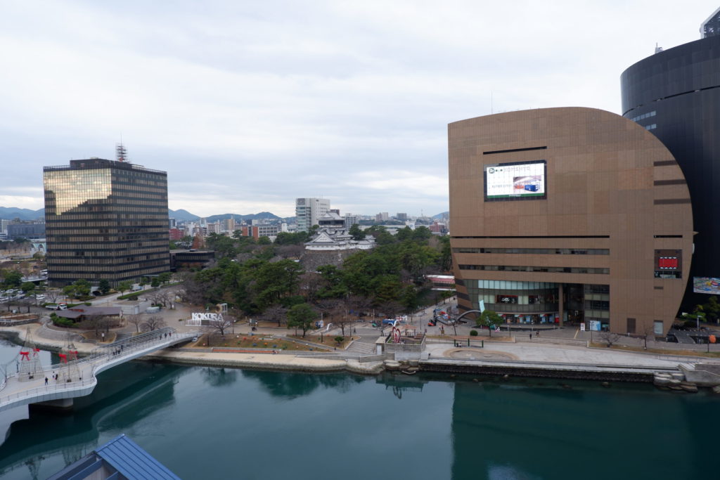 西側には、ゆったりと流れる「紫川」と、対岸には「小倉城」がそびえ立ちます。その城下町として発展してきた旧小倉市の中心市街地。現在もその場所には、デパートが立っています。