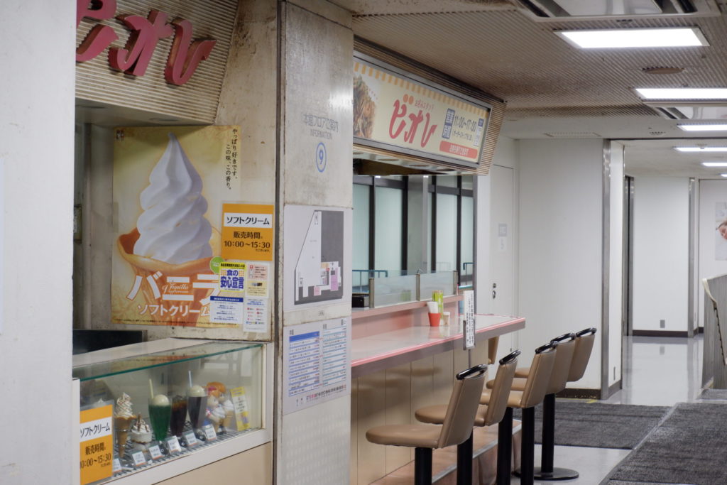 エスカーレーターを上がると、すぐ目の前にカウンタースタイルの「お好みスタンド ビオレ」があり、芳ばしいソースとローカルな雰囲気が香ります。その先には、