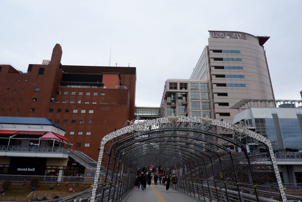 山陽新幹線「小倉駅」からおよそ800mほど離れた、紫川の畔にある巨大なデパート。北九州市の地場資本百貨店である「小倉井筒屋」です。
