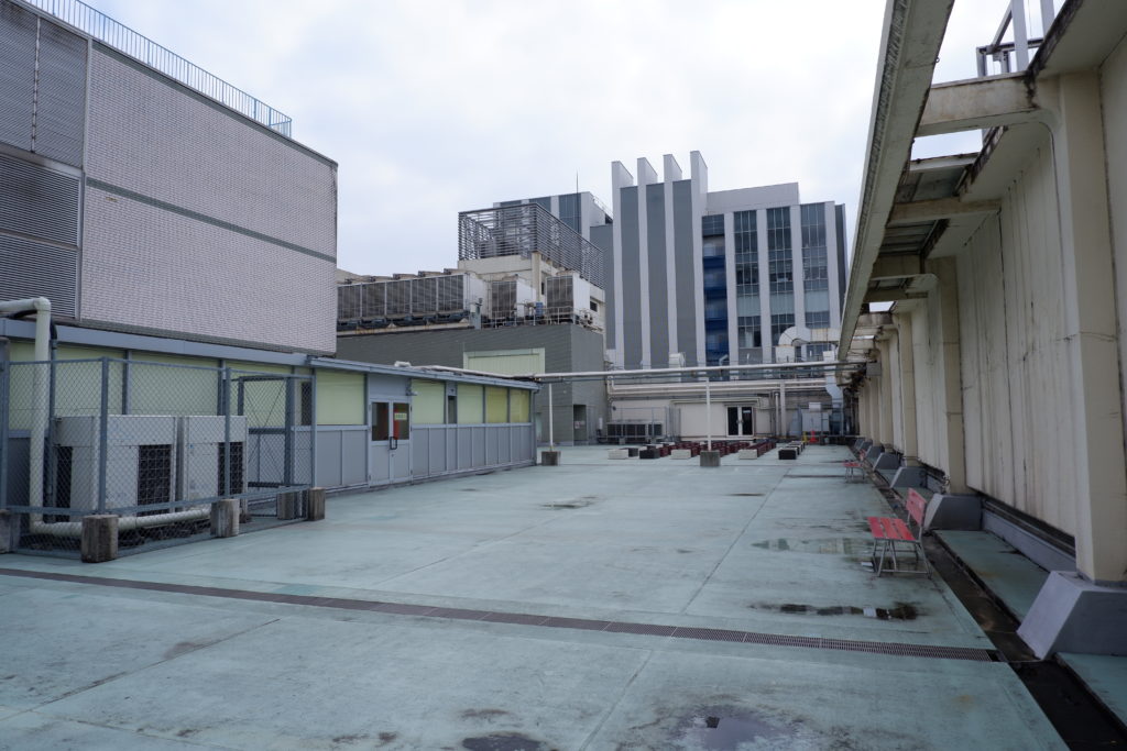 かつての遊園地の賑わいは消え、新たに屋上庭園が整備されるわけでもなく、時折たばこを吸いに来る人や、観覧車を見学する人がいる程度です。