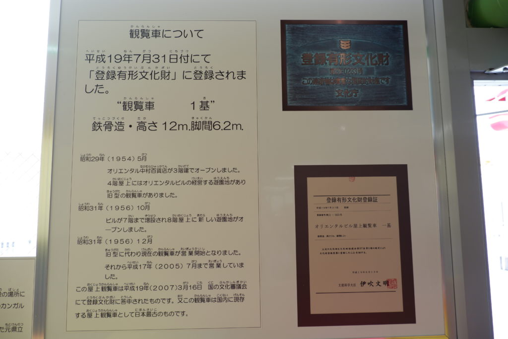 2007年には、日本国内に現存する最古の屋上観覧車として 国の登録有形文化財 に指定されました。