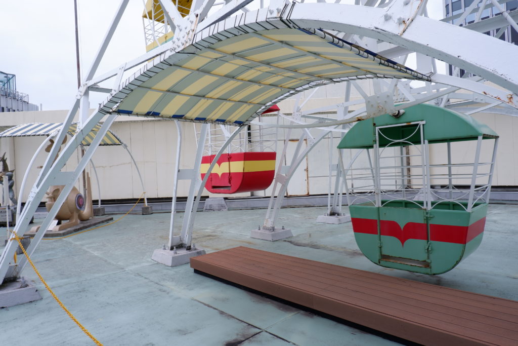 ゴンドラのコンパクトなサイズ感や、乗り場の低い天井などは、まさに昭和30年代の屋上遊園地のリアルな様子を現代に伝えています。