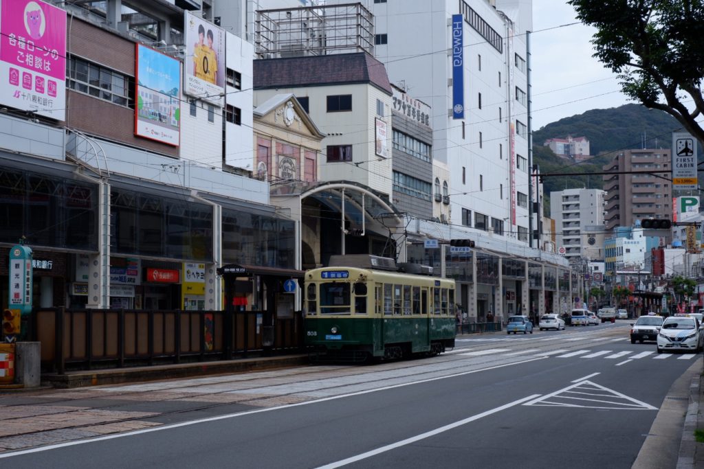 西日本はアーケード商店街が多く、とくに九州の都市では “路面電車×アーケード商店街×デパート” の組み合わせもよく見られます。