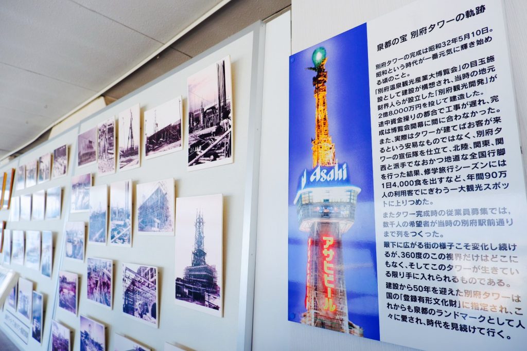 1957年(昭和32年)に「別府温泉観光産業大博覧会」開催に併せて1957年に竣工し、タワー6兄弟では三男にあたります。
