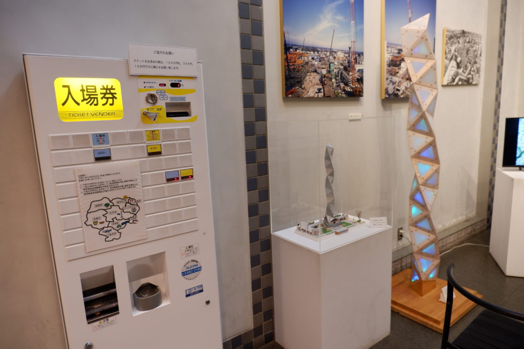 あまりに現実味のない見た目に「え、これ本当に登っていいの?」とためらいますが、麓へ行けばしっかりとしたエントランスがあり、券売機があり、エレベーターがあります。