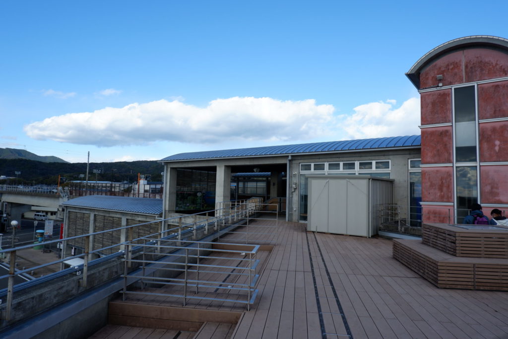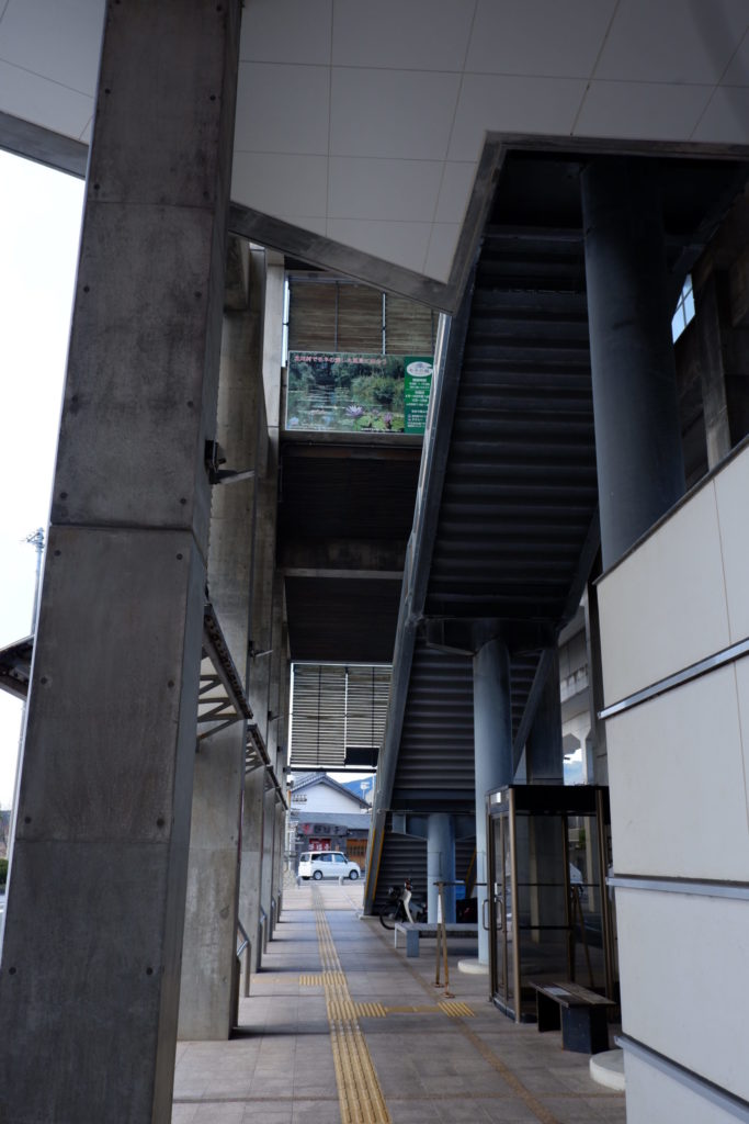 駅自体は1面1線のシンプルな構造ですが、そこに観光物産館と津波避難ビルが組み合わさり、なかなか立派な外観になってます。