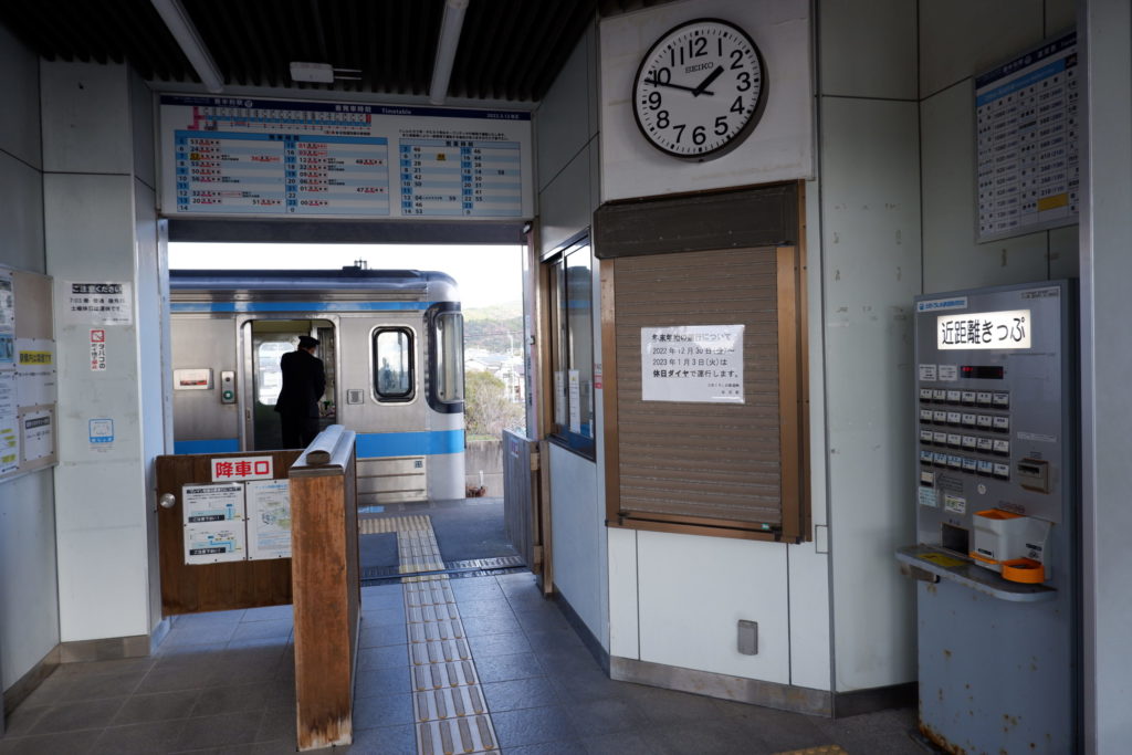 室戸岬からは路線バスに揺られること1時間。久しぶりに鉄道の駅にやってきました。ここから高知駅まではおよそ1時間半かかり、四国の右下の旅はまだまだ続きます。
