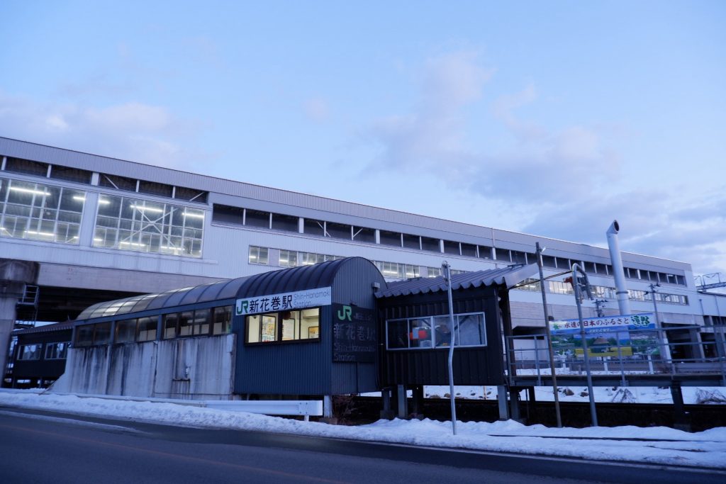 東北地方の田園地帯に、ぽつんと佇む大きな駅舎。