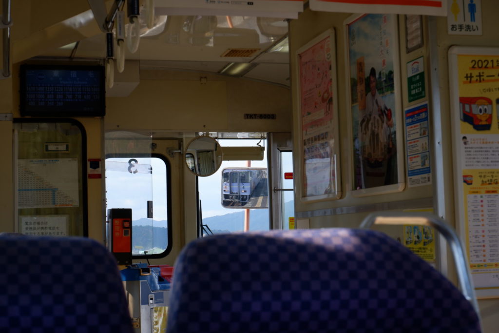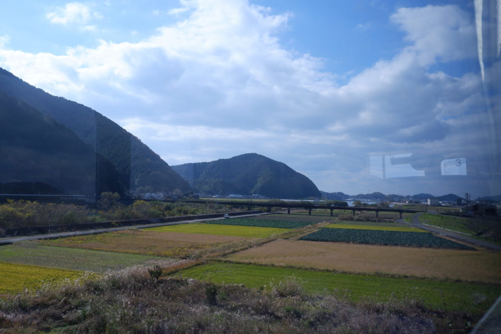 トンネルを抜けると視界が開け、列車は宿毛市の小さな平野部に出ました。車窓から海は見えないものの、どことなく海の気配を感じます。