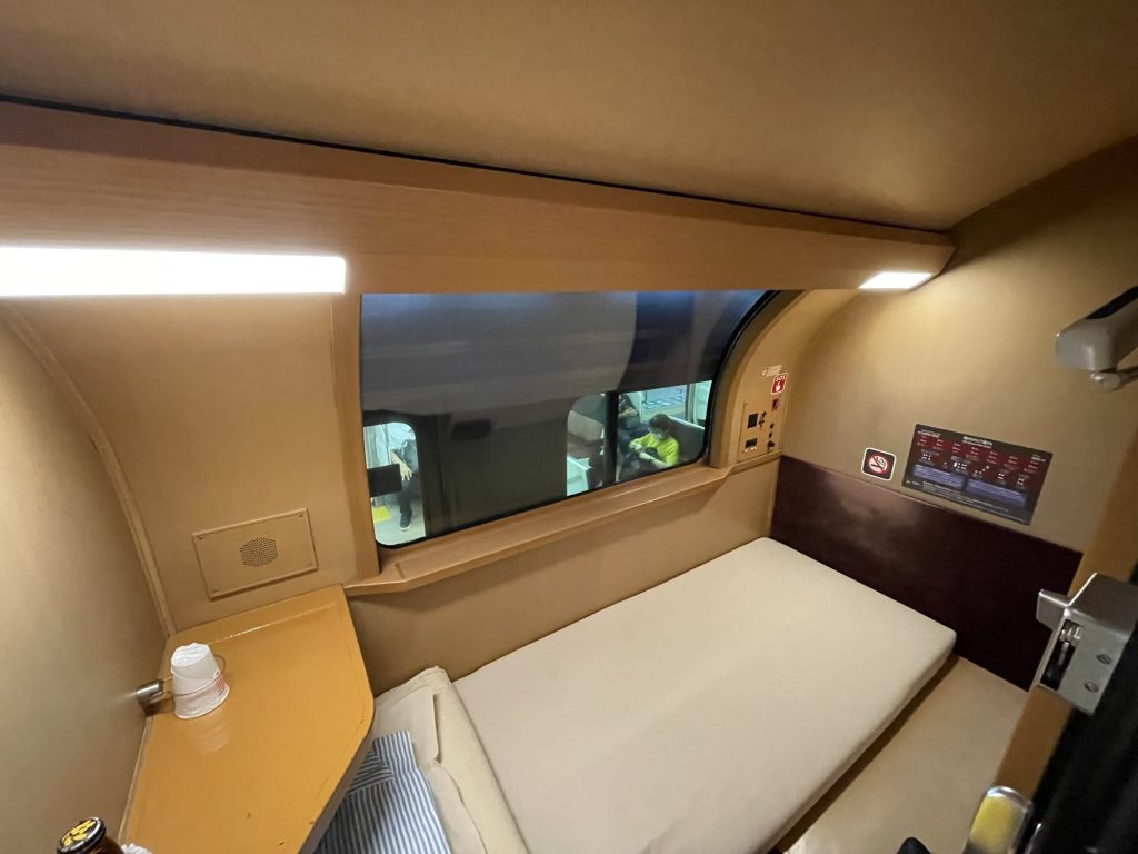観光客からも大人気なサンライズエクスプレスですが、当初はターゲットはビジネス客。高い居住性がありながらも、シンプルかつ機能的な車内は、例えるなら走るビジネスホテルでしょうか。