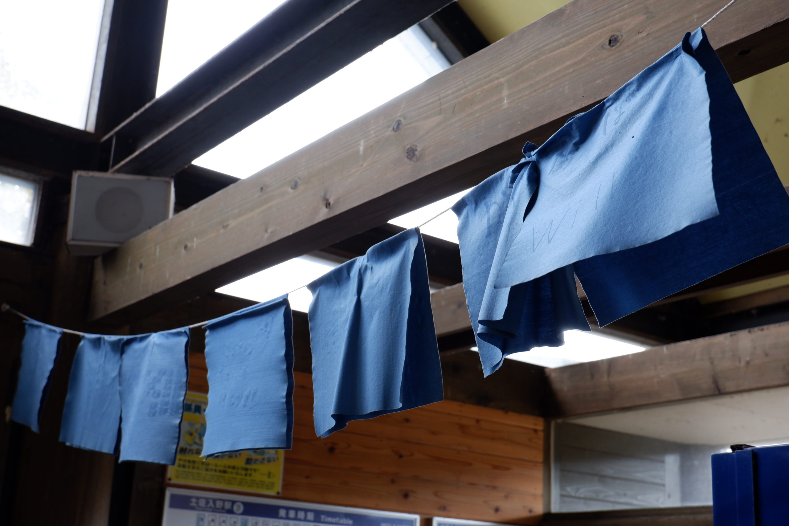 駅舎内は、鮮やかな青色のキルトや漁で使われた籠などが飾られていて、海沿いの町の雰囲気を存分に感じることができます。