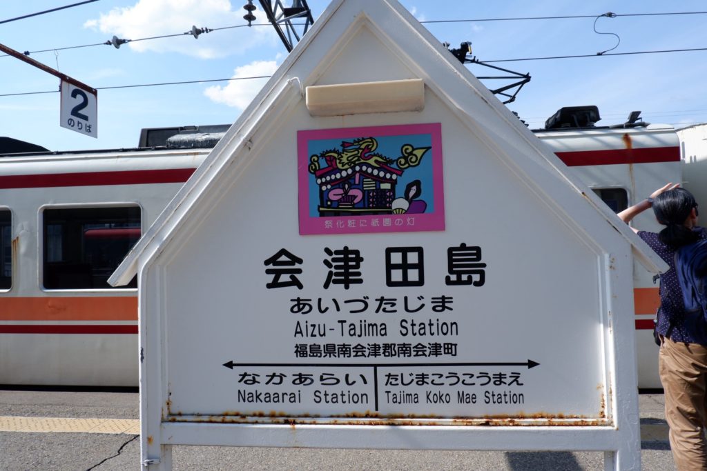 会津田島は南会津の拠点駅。当駅までは電化されており、野岩鉄道や東武鉄道からの直通列車も乗り入れています。2両編成の電車内に入ると、普通列車ながらも居住性の高い空間が広がりました。