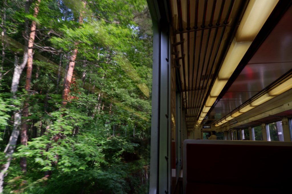 車内はガラガラで、1人でボックス席を占有しながら南会津の車窓を楽しみます。グリーン車よりも贅沢な、ローカル線の普通列車の旅です。