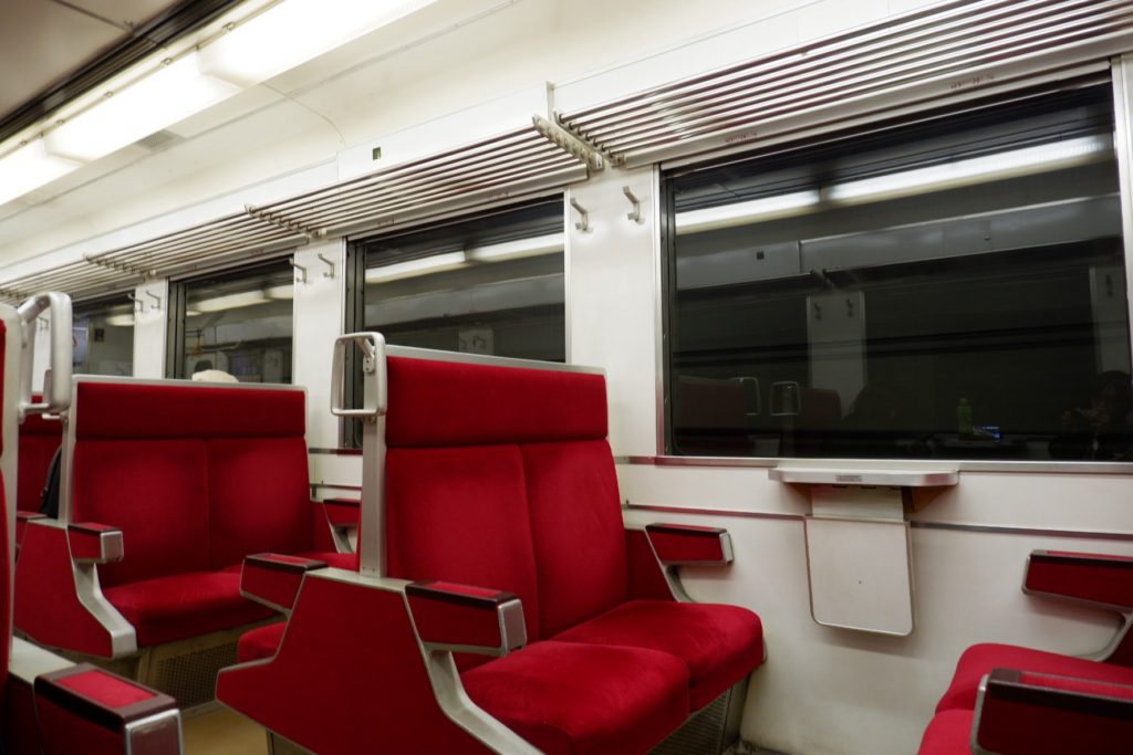 2つ扉の車内に、赤いモケットのボックス席がずらりと並ぶ様子は、ちょっと昔の近郊型電車の旅を追体験させてくれました。