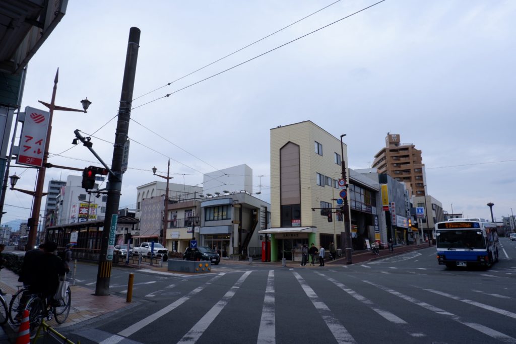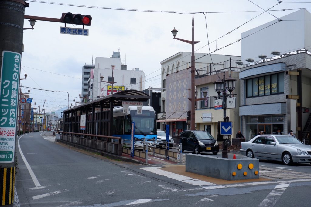 熊本駅前から約40分。市内中心部の西端から東端まで通り抜け、終点の健軍町までやってきました。“市街地の外れのほう” をイメージしてましたが、思っていたよりも都会です。