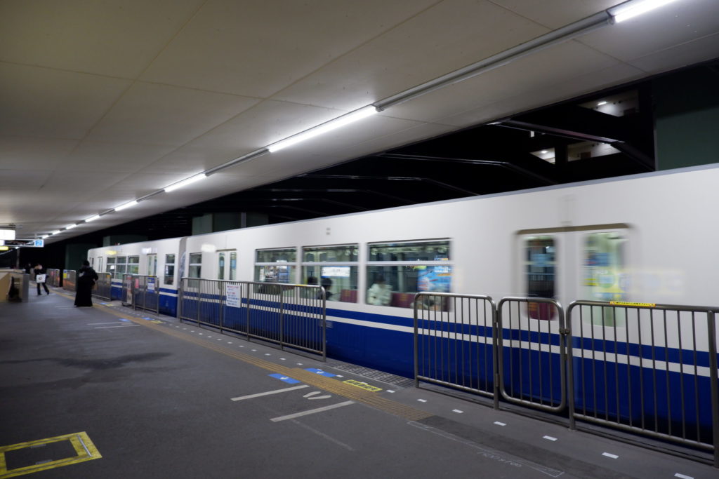 白地に青帯の標準カラーは、どことなく東海道新幹線 0系を彷彿させます。おそらく開業当初は未来的でスピーディーなイメージだったカラーリングも、今となってはノスタルジックです。