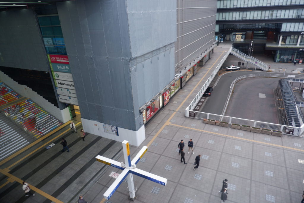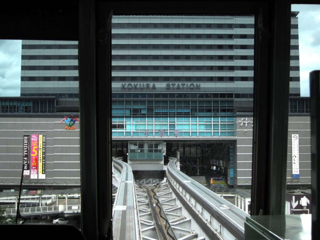 ペデストリアンデッキやバスターミナルを眼下に眺めながら、ゆっくりと巨大な建物に吸い込まれていく。まるでSF映画のワンシーンのような非日常とともに、終点・小倉駅に到着しました。