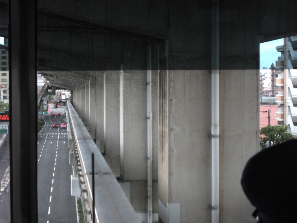「北方駅」付近では、北九州都市高速1号線と一体化した立体構造の中を進みます。