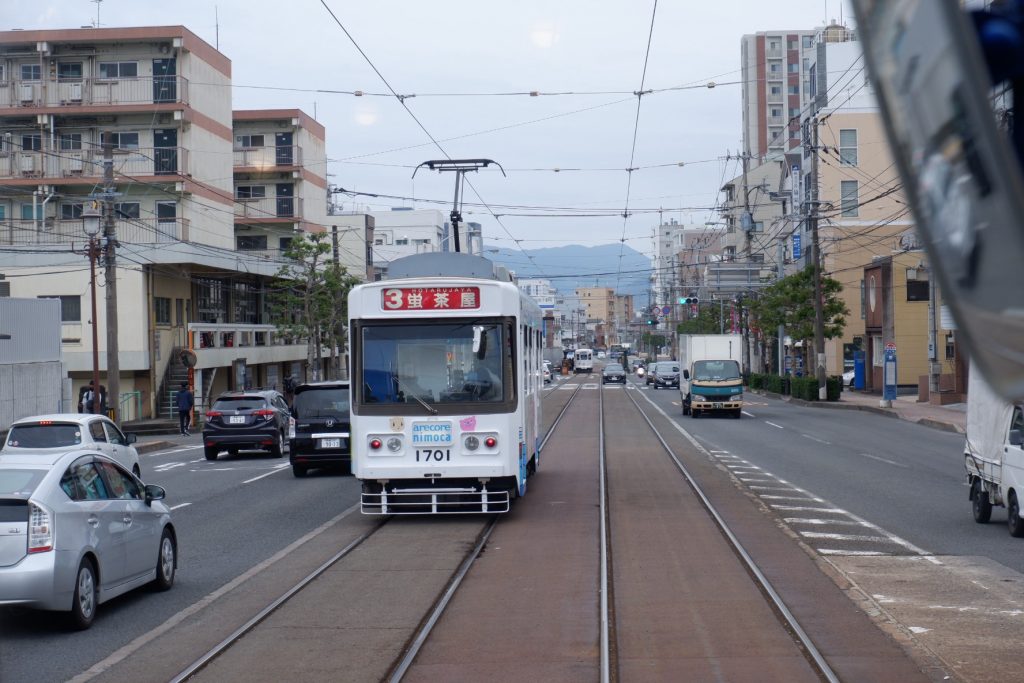 長崎市内を走る路面電車「長崎電気軌道」。