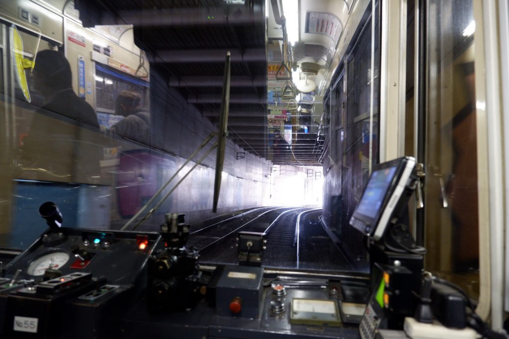 「昭和町通り」「住吉」でほとんどの乗客が降りて、車内は閑散とします。次はいよいよ終点です。