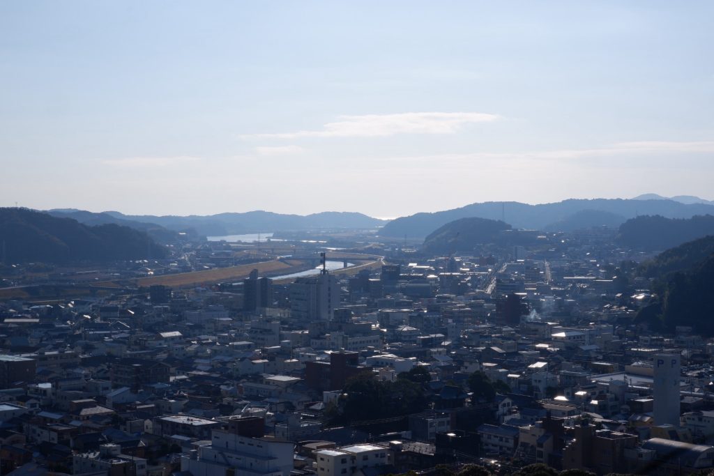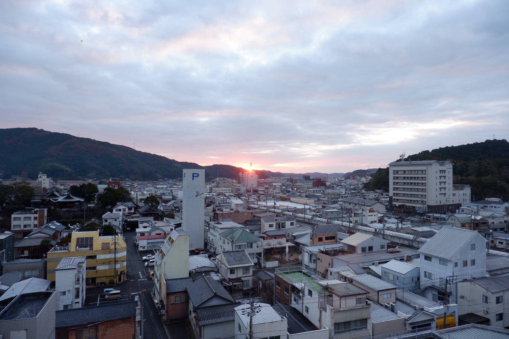 翌朝、部屋の窓から朝日が差し込んできました。山に囲まれている街ですが、実は海までわずか数kmです。