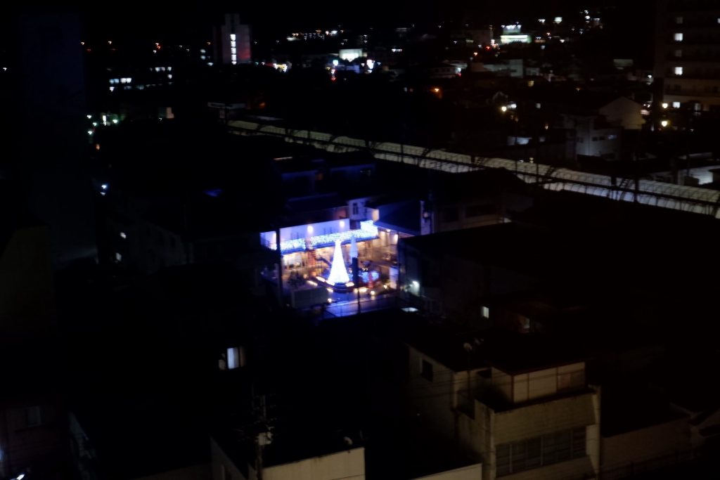 既にあたりは暗くなっていますが、中心市街地までは少し離れています。国道439号を歩いて街なかを目指します。