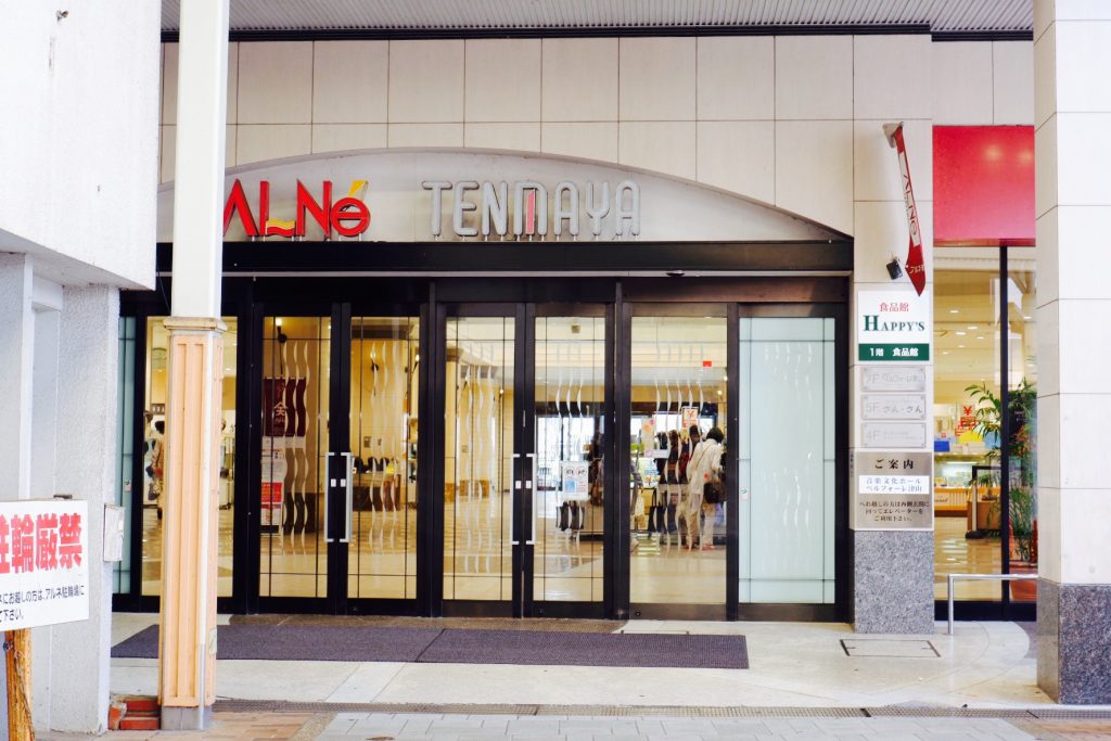 コンパクトシティ政策や中心市街地活性化を目的に計画され、1999年に開業した複合施設「アルネ・津山」。メインテナントは「天満屋百貨店 津山店」です。